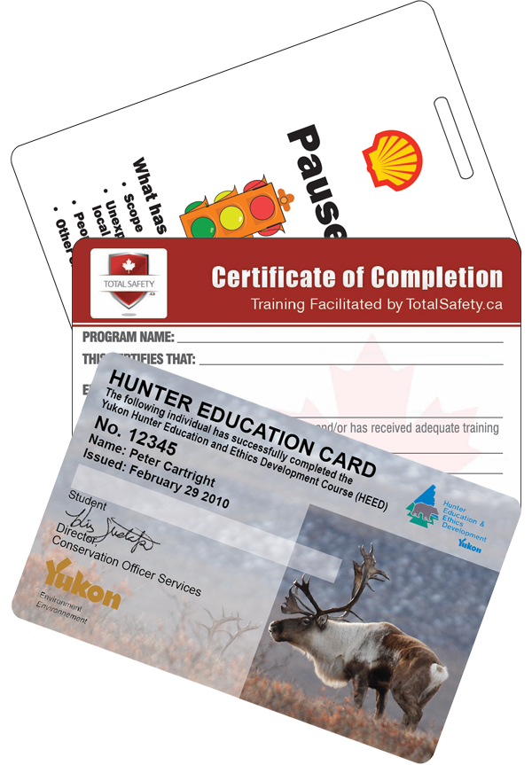 Health & Safety cards with a punched slot are widely used in the Oil & Gas and the construction industry to educate and keep safe their employees and sub-contractors. In some cases these health & safety cards are required to comply with provincial OH&S guidelines.